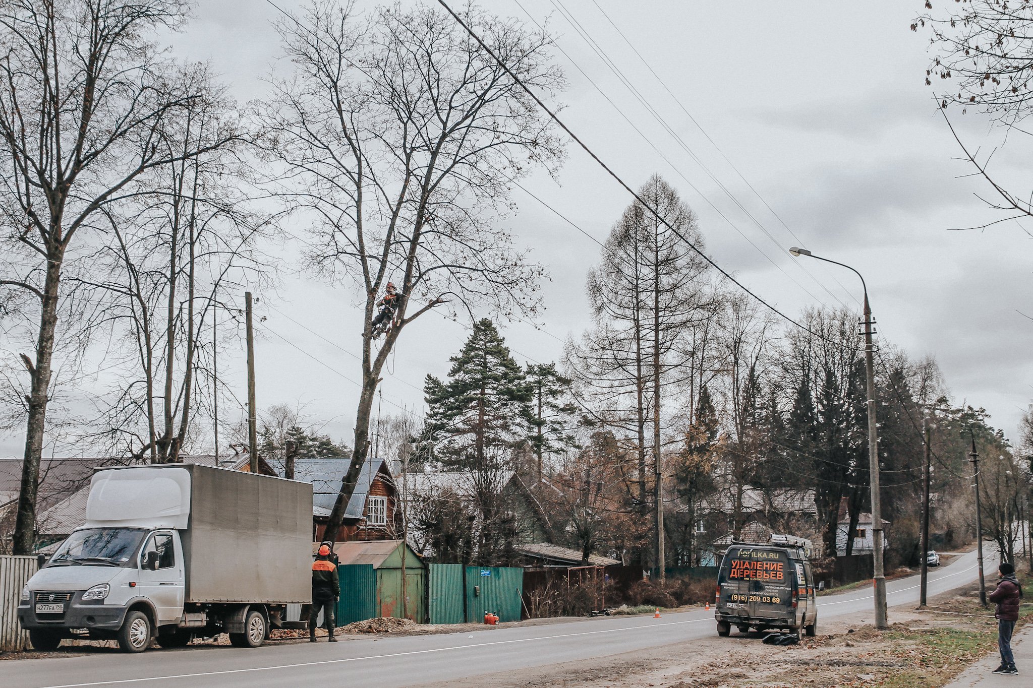 Спиливание деревьев. Американский клен, пос Правдинский, Пушкинский район